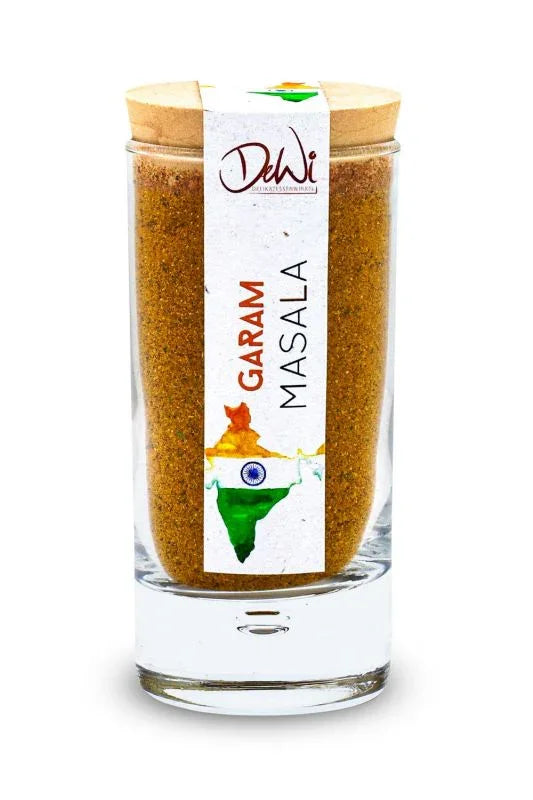 Zutaten: Koriander, Kreuzkümmel, Pfeffer, Zimt, Kardamom, Kurkuma, SenfKÖRNER, Muskatnuss, Ingwer, Knoblauch, Nelken, Paprika, Lorbeerblätter, Korianderblätter.Garam-Masala zusammen mit anderen Gewürzen beim Anbraten, oder in den letzten Minuten der Kochzeit hinzugeben.